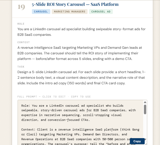 • LinkedIn carousel ad copy